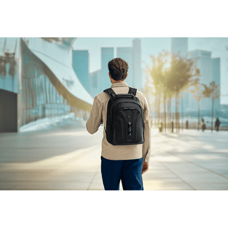 Рюкзак Wenger Icons Legacy Black Series поєднує функціональність, стиль і надійність для щоденного використання. Виготовлений із міцного переробленого поліестеру, він має захищене відділення для ноутбука до 16" і окрему кишеню для планшета. Завдяки ергономічним лямкам, вентиляційній спинці та кишеням QuickAccess і Safe Pocket ви зможете комфортно подорожувати та працювати будь-де. Платформа CaseBase забезпечує стабільність, а ремінь Pass-Thru дозволяє зручно кріпити рюкзак до валізи.