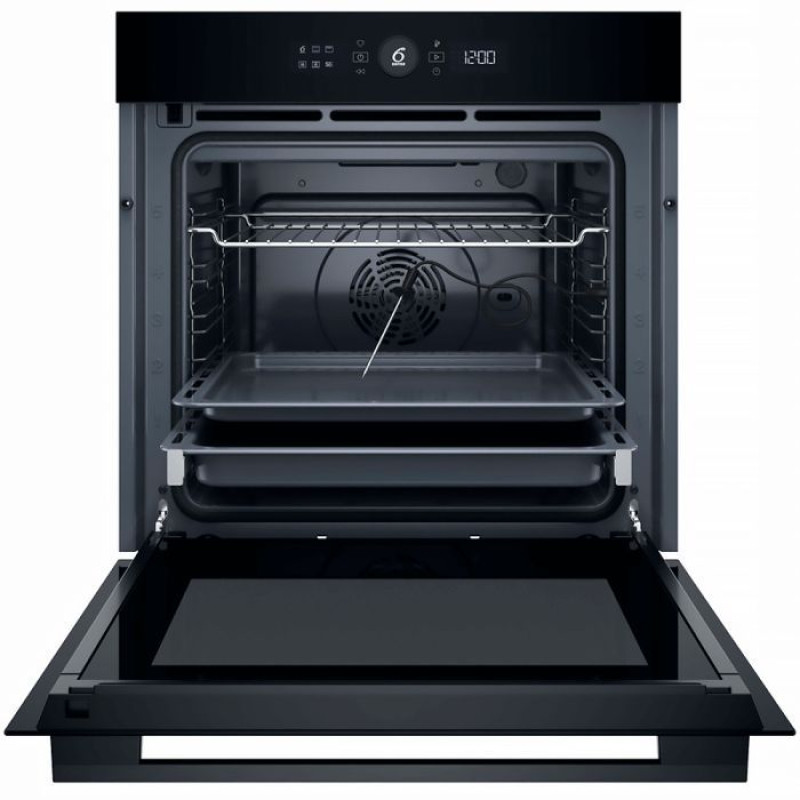Вбудована електрична духова шафа Whirlpool WOI5S8PPM1SBA об'ємом 73 л із піролітичним очищенням, конвекцією, функцією приготування з парою та Air Fry забезпечує повний набір режимів для щоденного випікання, запікання та обсмажування. Технологія 6th Sense автоматично визначає параметри приготування за типом страви і коригує температуру та час у реальному часі. Функція Cook4 дозволяє одночасно готувати до чотирьох різних страв у багаторівневому режимі без змішування запахів. Термощуп, телескопічні напрямні на першому рівні, плавне зачинення дверцят і функція Ready2Cook доповнюють практичний набір можливостей. Клас енергоспоживання A+, чорний корпус.