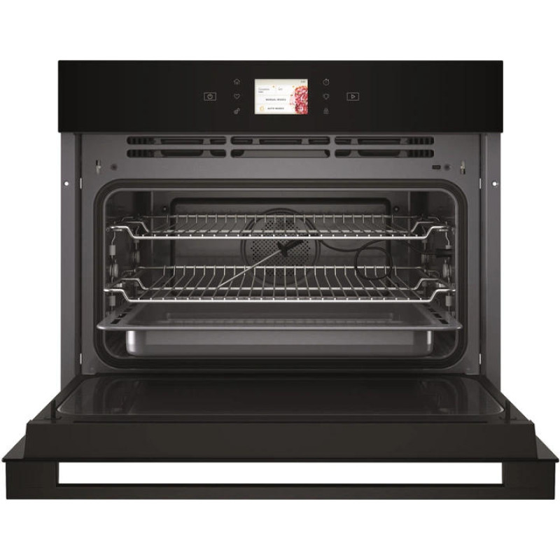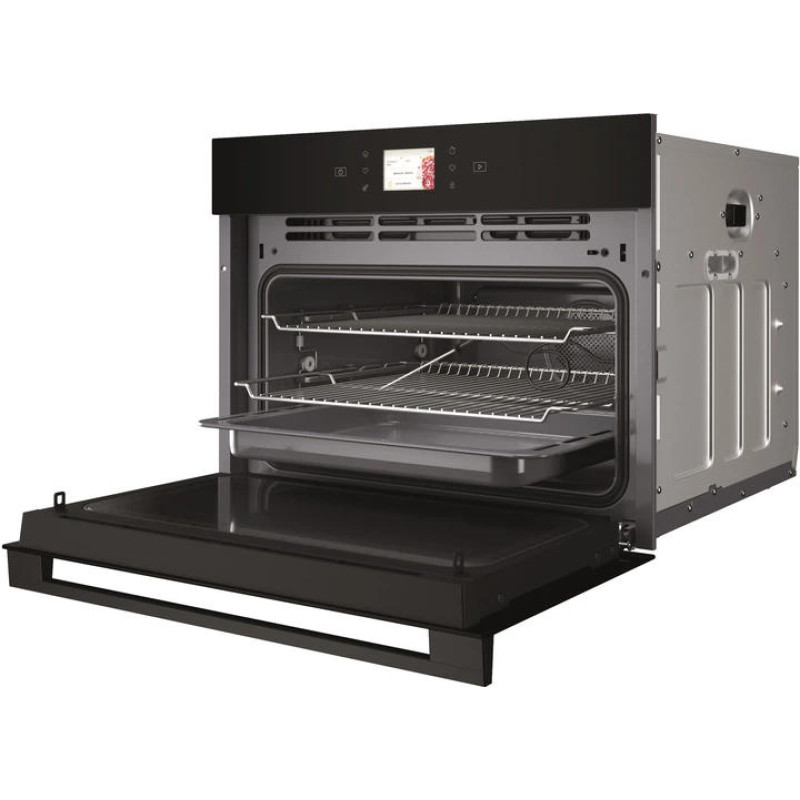 Духова шафа Whirlpool WCW9O7PHTSB об’ємом 53 л поєднує електричний нагрів, конвекцію та мікрохвилі потужністю 950 Вт. Технологія 6th Sense автоматично підбирає параметри для різних страв, а функції Crisp та Jet Start дозволяють швидко готувати або розігрівати з хрусткою скоринкою. Сенсорне керування, дисплей, термощуп у комплекті та режим JetDefrost спрощують щоденне використання, а емальоване внутрішнє покриття полегшує очищення.