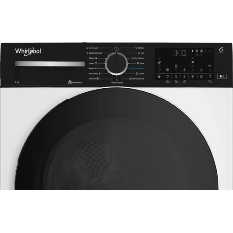 Сушильна машина Whirlpool WPB9XWBSUA з тепловим насосом класу A+++ і завантаженням 9 кг сушить білизну при нижчих температурах, ніж конденсаційні або прохідні моделі, захищаючи волокна тканини і значно скорочуючи споживання електроенергії. Технологія 6-е відчуття контролює вологість і температуру в барабані в реальному часі та автоматично завершує цикл у момент досягнення потрібного ступеня сухості. Барабан AquaWave з нержавіючої сталі та реверсивним обертанням рівномірно переміщує речі, запобігаючи їх стисканню та зниженню якості просушування. 11 програм від бавовни та синтетики до вовни, пухових виробів і гігієнічного циклу охоплюють увесь спектр щоденного прання.