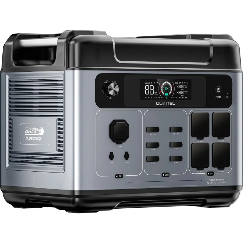 | Вихідні інтерфейси | 4 х AC змінного струму 2400Вт, 2 х порти USB-A - 18Вт (5В/3A, 9В/2A, 12В/1.5A), 2 х порти USB-C PD - 20Вт, 1 х порт USB-C PD - 45Вт, 1 х порт 1 - 120Вт (12В, 10A), 2х виходи DC5521 - 36Вт (12В, 3A) |