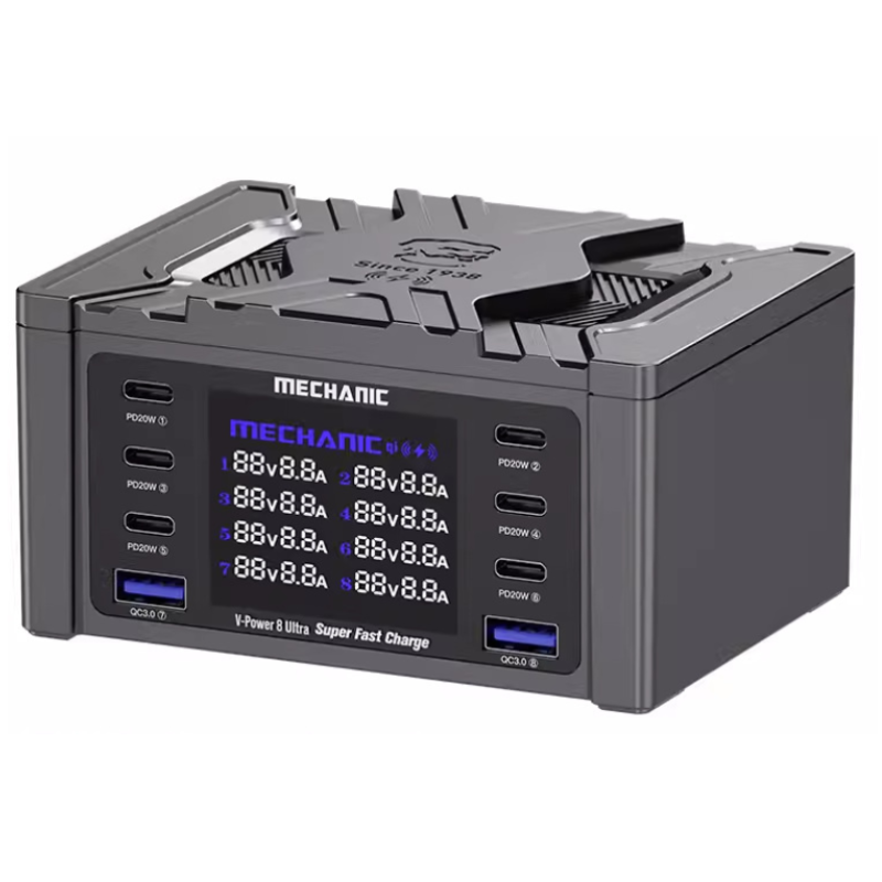 MECHANIC V-Power 8 Ultra – це надійний та технологічний центр живлення для сучасного користувача, який цінує швидкість, зручність та контроль над процесом зарядки. Пристрій поєднує в собі потужність, компактність та продуману ергономіку, роблячи його незамінним помічником у повсякденному житті.
