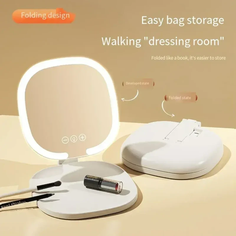 Компактність та портативність: елегантна складна конструкція дозволяє легко носити дзеркало в сумочці чи багажі, гарантуючи бездоганний зовнішній вигляд у дорозі.