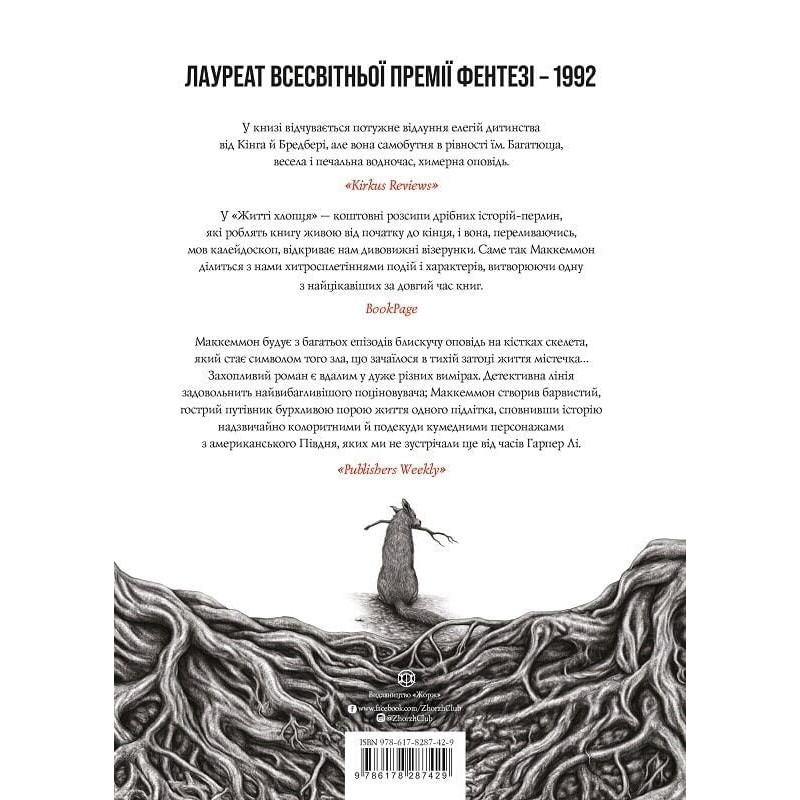 Роберт Маккеммон, відомий своїми роботами у жанрі горору, створив у книзі «Життя хлопця» щось зовсім інше: щемкий, пронизливо чесний твір про дитинство, втрату наївності та шлях до дорослішання. Написаний ще на початку 90-х, роман не втратив актуальності й сьогодні, а, навпаки, набув нового звучання для читача, який готовий згадати себе у 12 років і ще раз подивитися на світ очима дитини.