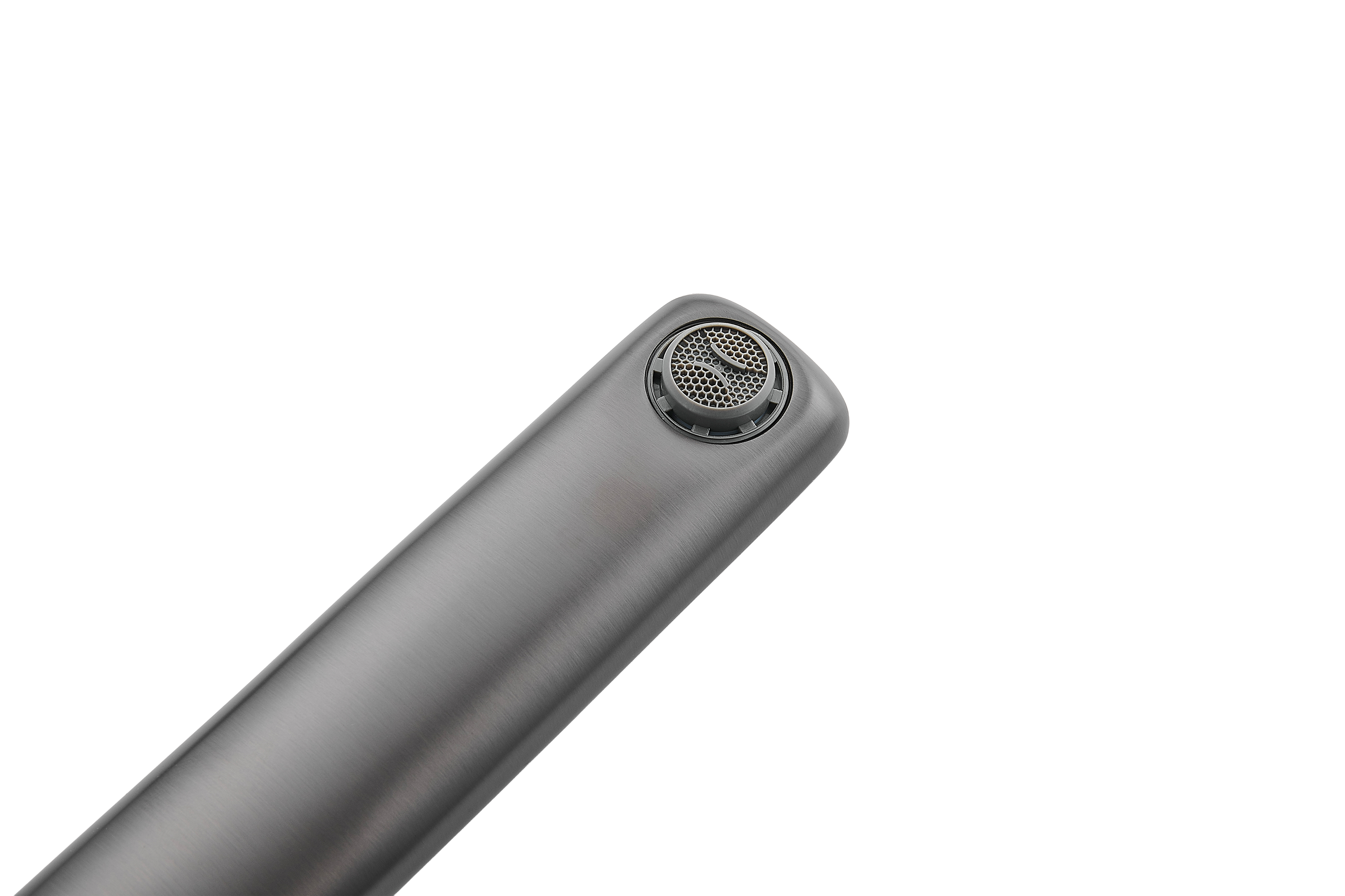 Головна особливість моделі — графітове PVD-покриття. Це сучасна технологія нанесення захисного шару, завдяки якій поверхня стає більш стійкою до щоденного використання. Змішувач довго зберігає охайний зовнішній вигляд, виглядає рівномірно й дорого, а сам графітовий відтінок чудово поєднується з каменем, плиткою, бетоном, деревом та матовими аксесуарами у ванній кімнаті.