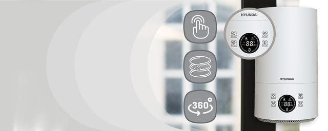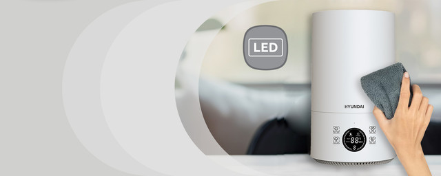 Легко виставляйте всі необхідні режими і функції зволоження за допомогою панелі з сенсорним керуванням. Всі обрані налаштування дублюються на круговому дисплеї з LED-індикацією, що відображає поточний рівень вологості і помилки, включаючи недостатній рівень води в резервуарі.